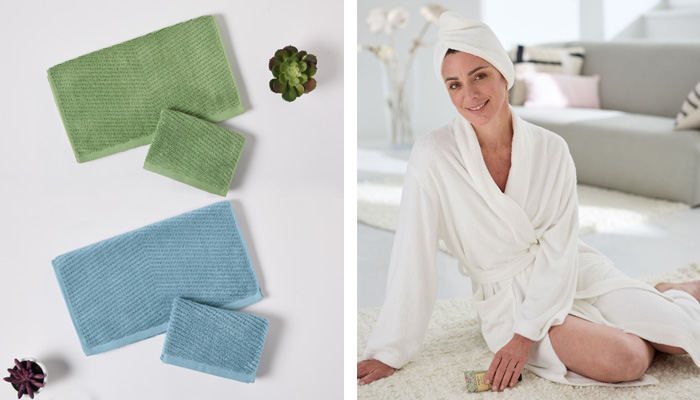 Bamboo Towels SHW and BTOW, Bath Robe BBR and Hair Wrap Towel BWT